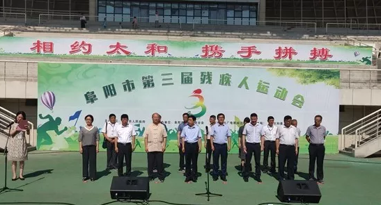 7月17日上午,阜阳市第三届残疾人运动会在太和县体育中心隆重开幕,阜阳市政府副市长、市残联主席王显义,市残联党组书记魏宏伟,市文广新体局副局长苏锋,市公安局副局长万传红,市卫计委副主任都凤仁,市广播电